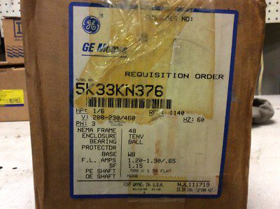 GE motor, #5K33KN376, 1/6hp, 1140rpm, 208-230/460v, FR-48, With warranty